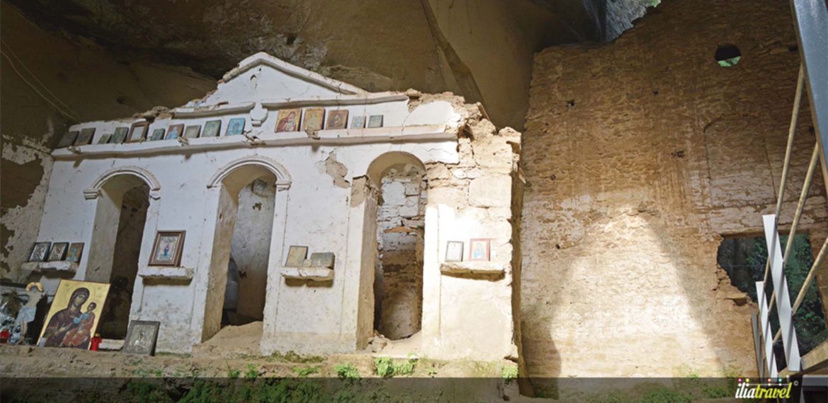 At the point where the two mountains blended and the cave of two caves was built, the monastery, which for many years was a monastic center. Indeed, once the Monastery housed more than fifty monks, it was abandoned in the last half century. Other historical references indicate that this area was probably a former ancient sanctuary, the cobbled paths existed long before the monastery and that the area was closely linked to the area and the ancient olives that exist in the surrounding area as well as to the mountainous route followed by the athletes in order to get from Ancient Elida to Ancient Olympia in order to participate in the Olympic Games.