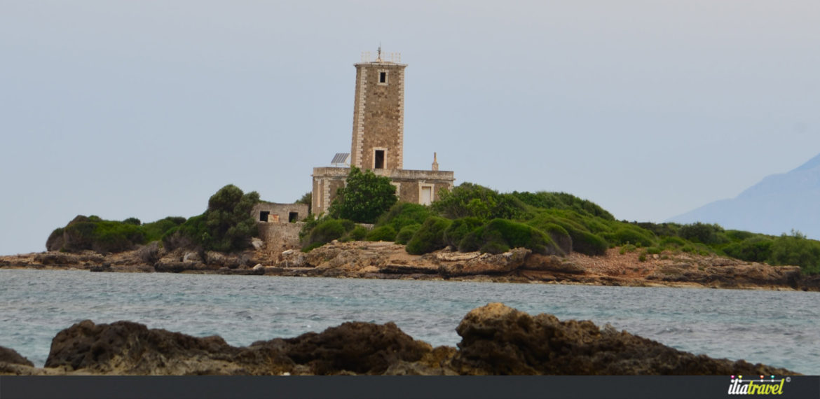 The lighthouse on the island of Kaikalidas, at the westernmost point of the Peloponnese in the Ionian Sea, located just outside Killini, against the background of Mount Aenos, was built in 1906 with a tower height of 15 meters and a focal height of 19 meters. Traditionally, the island was connected to the land with a strip of land. On the small island there are Roman tombs and the ruins of an Early Christian temple. Today you go by boat or cliff-rock (reefs). It is a remarkable example of a building of historical and technical interest, important for the history of communications and navigation. It is made of masonry and reinforced concrete elements and includes the tower of the lighthouse and the housekeeper’s residence. The rocky islet “Kaikalidas” has a height from the sea of 5.5 meters and there are some tenths of the nautical mile – as it is characteristically mentioned – from the northwest boundary of the extreme Glarzha to which it joins with shallow rocks and rocks on the surface of the sea. On the rocky island there are ruins of an ancient temple.