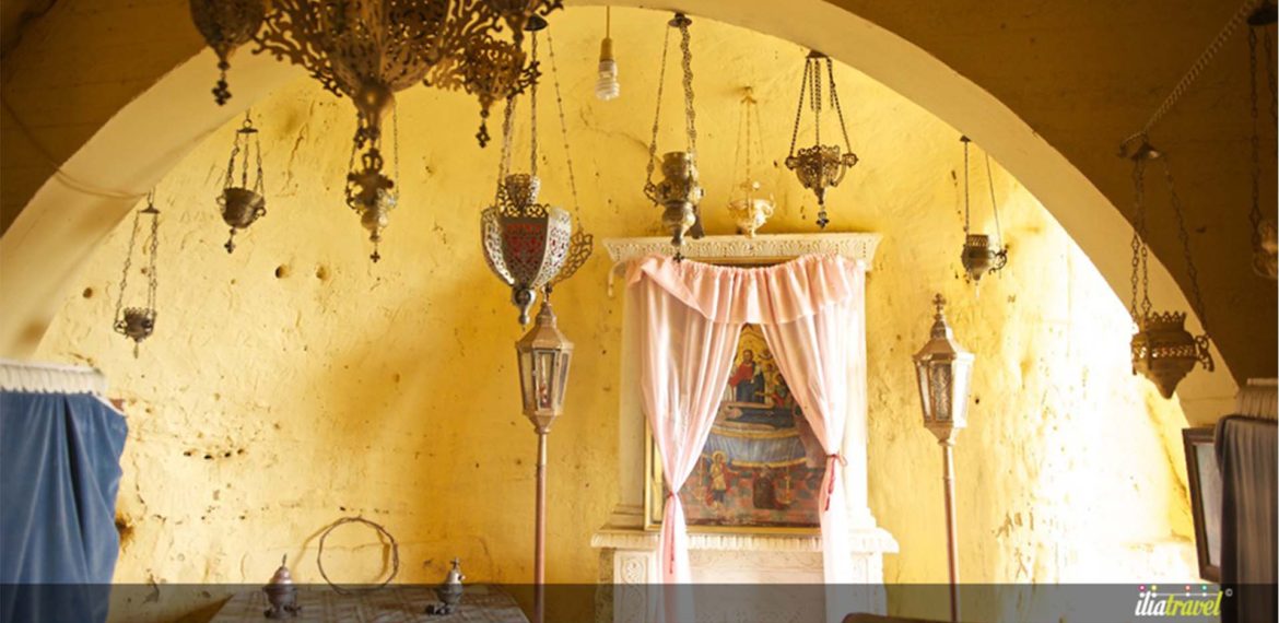 Monastery of Panayia Kremasti in Lanthi stands impressive and impresses with its volume as if hanging on the rock. It is found in the local community of Lanthi in the municipality of Pyrgos and is said to have been discovered when, 800 years ago, residents of the area saw a light in the evening in a hole in the rock. So someone was hung with a rope, who found the image of the Virgin Mary suspended. The monastery celebrates on August 23rd. Thousands of pilgrims during the evening pray and on the feast day are flocking to worship the Lord. The monastery receives thousands of pilgrims throughout the year. From the church’s balcony, the visitor will see all the beauty of the land of Ilia up to the forest of Foloi and the majesty of Erymanthos. Visitors can go to the monastery from the village of Lanthi or from Lambeti at 8 km. In both cases the scenery is beautiful. Today the monastery consists of 17 Nuns.