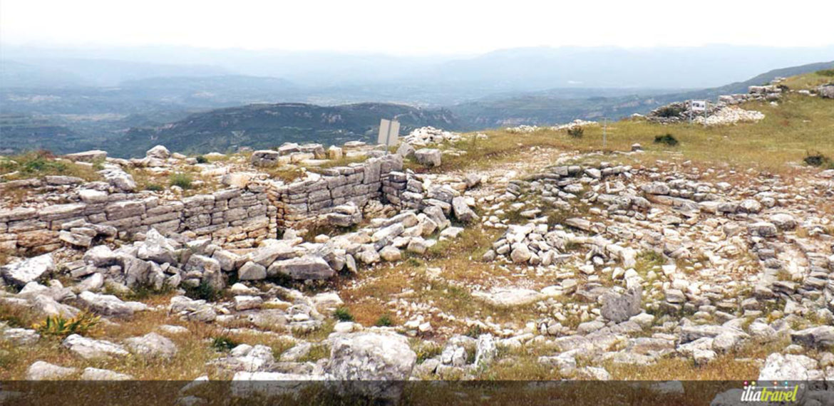 Elements from the ancient acropolis are preserved as well. The small square acropolis, with a perimeter of 500 meters, is built with bulky local stones. Within the inner wall there are foundations of a small temple of thin, columns, capitals and fronts bearing all the distinctive decorations of Doric rhythm. It seems that this small sanctuary is modern of the temple of Apsylon of Basil (430-429 BC). At the highest point of the Acropolis there are the remnants of the Frankish Castle.