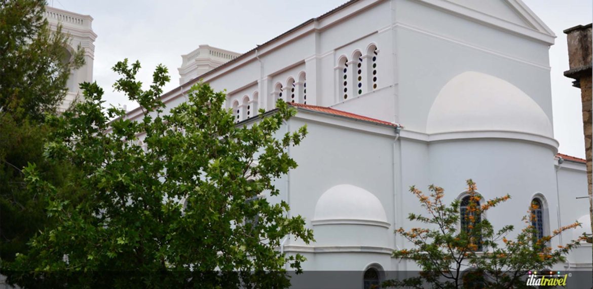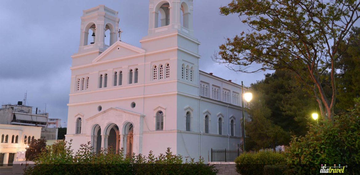 St. Nicholas church. is located in the central square of the town of Pyrgos, bearing the name “Sakis Karagiorgas”. It is the Metropolis of Pyrgos and its architectural style is a three-aisled basilica. In 1885 it was destroyed by the earthquakes, with the first works from its reconstruction to take place in May 1889. In fact, for the reconstruction of the Holy Church of St. Nicholas at that time, special craftsmen of marble and stone from the Sporades arrived at Pyrgos. In 1904 the municipality of Pyrgos decided to donate four thousand drachmas for the completion of the Temple, which was inaugurated in 1906. The Metropolitan Church brings into its interior important portable icons, most of which are donations of citizens and associations. A special mention is worth donating from the former MP Nakis Avgerinos of the image of the Crucifixion of Christ, which is a faithful copy of the painting of Dominique Theotokopoulos (El Greco) which the donor brought from the Prado Museum of Spain where the original work is. In front of the Metropolitan Church, there are the busts of Metropolitan Oleni, Philaretos, who was tortured and hanged in Tripoli in 1821 and the late Metropolitan of Ilia, Athanasios. The Temple reopened in 2014 in order to carry out major renovations and maintenance work, reopening its gates to the believers in December 2017.
